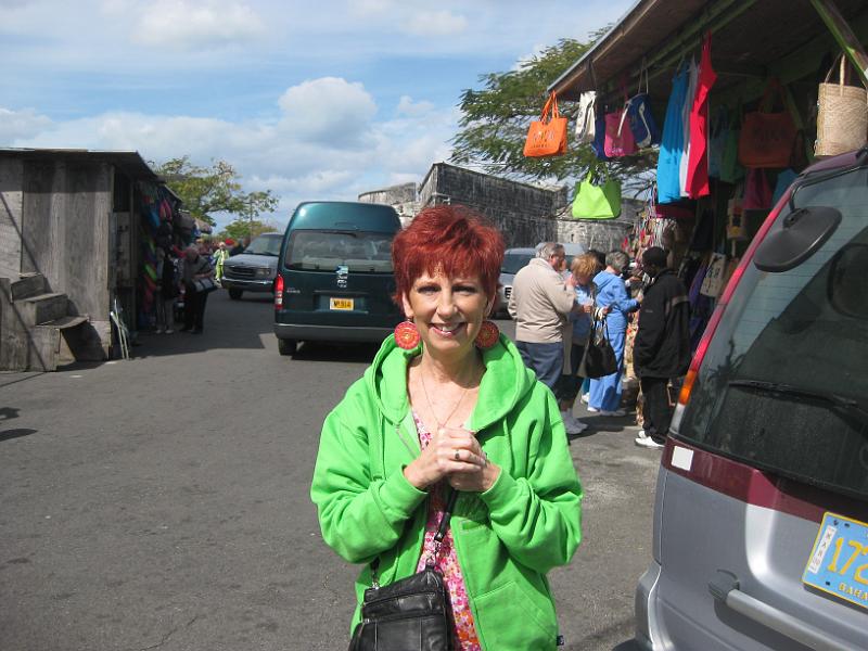 Here's Pam on one of the side streets. They're all this way ... narrow and winding.