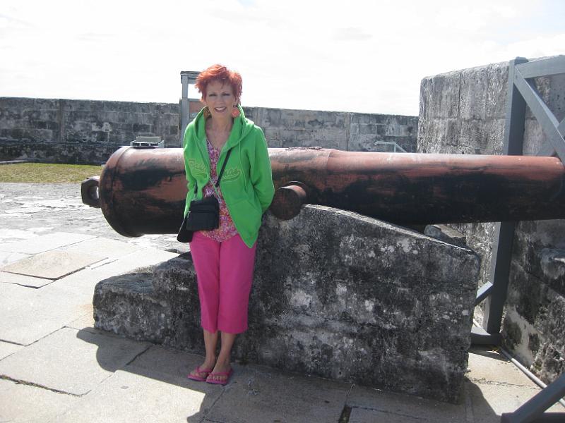 Pam by one of the replica cannons.