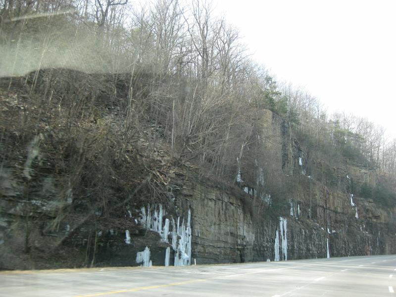 Sunday afernoon, on the mountain just northwest of Chattanooga ... there is still ice frozen to the rock cuts.